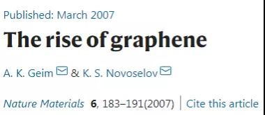 該文2007年由英國曼徹斯特大學的A. K. Geim和K. S. Novoselov教授發(fā)表于Nature Materials,而在2010年兩人就因為發(fā)現(xiàn)了石墨烯材料而獲得了諾貝爾物理學獎,并由此掀起了石墨烯以及各種二維材料的研究熱潮。截至2021年2月17日,該文累計被引28,528次。