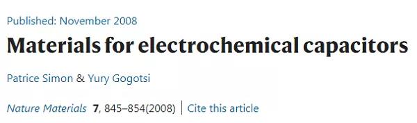 該文2008年由美國德雷塞爾大學的Yury Gogotsi和法國圖盧茲第三大學的Patrice Simon教授發(fā)表于Nature Materials,是超級電容器特別是非對稱超級電容器的開山之作。截至2021年2月17日,該文累計被引11,312次。