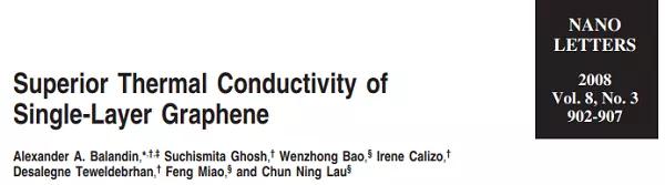 該文2008年由美國加州大學河濱分校Alexander A. Balandin教授等人發(fā)表于Nano Letters。截至2021年2月17日,該文累計被引8,652次。