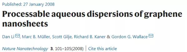 該文在2008年由澳大利亞臥龍崗大學Gordon G. Wallace教授和Dan Li教授等人發(fā)表于Nature Nanotechnology。截至2021年2月17日,該文累計被引7,217次。