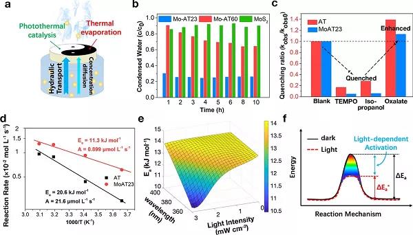 在以等離子體金屬納米顆粒為代表的催化劑發(fā)揮光熱催化效果時,產(chǎn)生熱電荷載流子可活化反應(yīng)物、并降低反應(yīng)的總能壘。然而,在這過程中的熱和電子激發(fā)的關(guān)系尚不清楚。針對這一問題,萊斯大學(xué)的Peter Nordlander和Naomi J. Halas[3]等人通過研究氨氣分解來分析光和熱激發(fā)的作用。在銅合金納米構(gòu)造中,通過吸收光產(chǎn)生電子可活化在釕表面原子上的氮原子。通過測量不同波長、光強和催化劑表面溫度下的反應(yīng)速率,可以定量表觀活化能壘,厘清熱載流子的作用,并為設(shè)計高效光催化劑奠定了基礎(chǔ)。