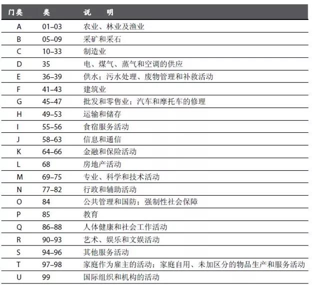 為此,筆者找到了中國政府參照聯(lián)合國分類標(biāo)準(zhǔn)制定的于2017年6月30日發(fā)布的《國民經(jīng)濟(jì)行業(yè)分類》的國家標(biāo)準(zhǔn)“Industrial classification for national economic activities”。國標(biāo)對行業(yè)分類劃分得更加精細(xì):其中最大的門類從A到T,其中門類C為制造業(yè),擁有從第13到第43項(xiàng)共31個(gè)大類,179個(gè)中類,613個(gè)小類。與網(wǎng)絡(luò)流傳的說法也大致相當(dāng)。