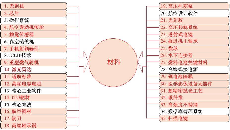 ▲ 《科技日?qǐng)?bào)》列出的與材料相關(guān)的“卡脖子”技術(shù)清單