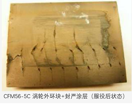 易磨涂層(Abradable Coating),是發(fā)動機(jī)葉尖封嚴(yán)系統(tǒng)的一部分,也叫“封嚴(yán)涂層”。通常應(yīng)用于機(jī)匣零件中的跑道面,主要作用是減少葉尖碰磨損傷。由于易磨涂層需要跟葉尖進(jìn)行對磨,為了保護(hù)葉尖,易磨涂層一般硬度小,結(jié)合力差,從而能夠保證葉尖在大服役狀態(tài)碰上時(shí),能夠有效地刮削涂層。