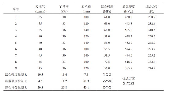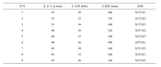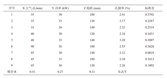 表 3 等離子噴涂正交實(shí)驗(yàn)表