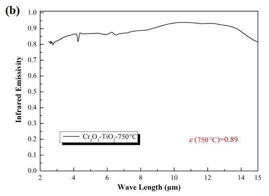 (4) Cr2O3-TiO2/nano-YSZ 復(fù)合涂層在 400 ℃和 750 ℃法向發(fā)射率(波長 2~15 μm) 分別為 0.91和 0.89。