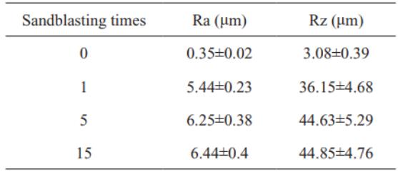 表 2 噴砂不同次數(shù)后試片表面粗糙度