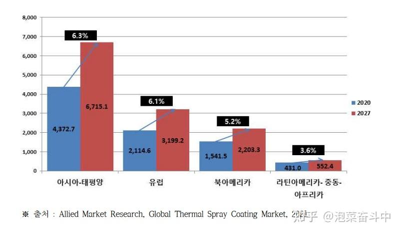 按地區(qū)來看全球熱噴涂市場(chǎng),截至2019年,亞太地區(qū)占比最高,為51.5%。