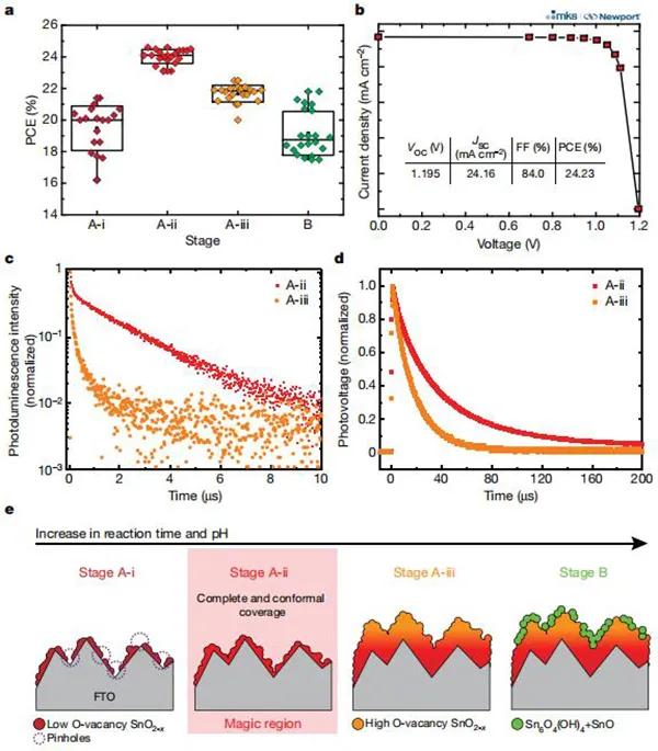 圖二、基于各種SnO2 ETLs的PSCs太陽能電池性能