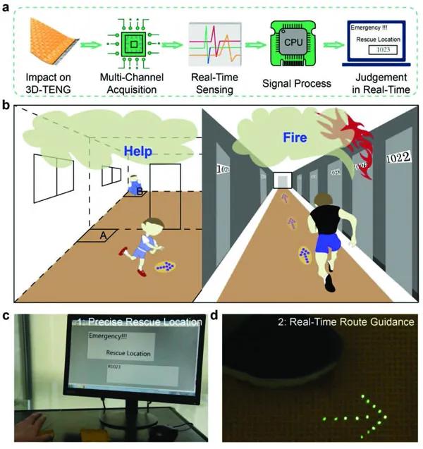 圖5 3D F-TENG在自供電逃生和救援系統(tǒng)中的應(yīng)用