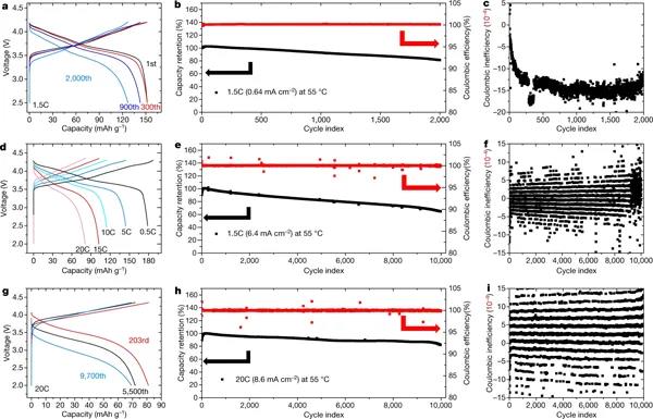 圖3 多層設計的固態(tài)電池的循環(huán)性能