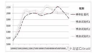 從圖4所示的功率、扭矩曲線可以看出,采用噴涂技術(shù)后,發(fā)動機功率、扭矩有明顯提升,尤其是中低速扭矩提升幅度非??捎^,最大提升約20 Nm(9%)。
