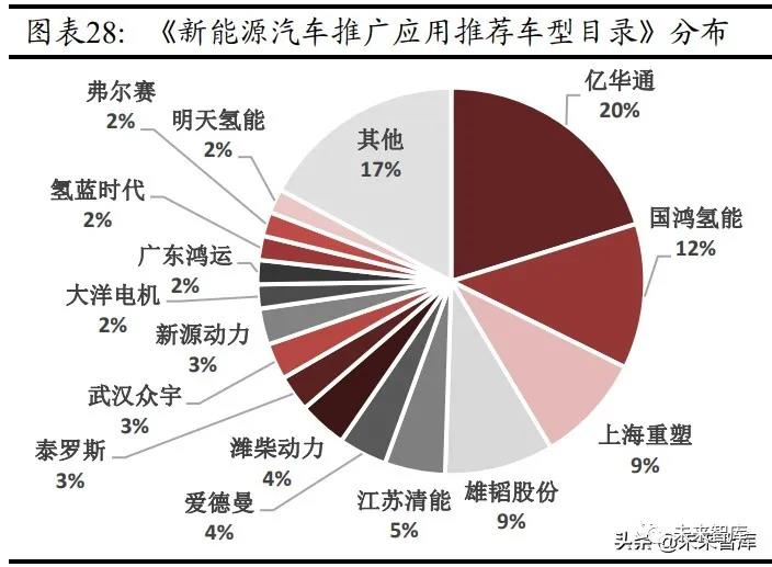配套車(chē)型居行列第一,市占率高龍頭地位穩(wěn)固:根據(jù) 19 年發(fā)布的《新能源汽車(chē) 推廣應(yīng)用推薦車(chē)型目錄》,被納入目錄的燃料電池商用車(chē)型共 185 款,其中配套 公司生產(chǎn)發(fā)動(dòng)機(jī)系統(tǒng)的商用車(chē)車(chē)型共計(jì) 37 款,占比高達(dá) 20%,超出第二名國(guó)鴻 氫能 8%。公司燃料電池發(fā)動(dòng)機(jī)市場(chǎng)占有率穩(wěn)定在 20%左右,2019 年全國(guó)燃料電 池汽車(chē)銷(xiāo)量 2737 輛,同期億華通燃料電池發(fā)動(dòng)機(jī)銷(xiāo)量 498 套,龍頭地位穩(wěn)固。