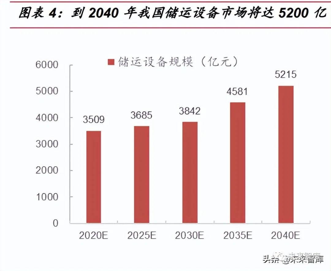 龐大的氫能需求需依靠完善的氫儲(chǔ)運(yùn)供應(yīng)鏈,將帶來千億級(jí)設(shè)備投資規(guī)模。在 氫能行業(yè)深度報(bào)告系列二中,我們?cè)敱M分析了氫能在工業(yè)、交通、建筑等領(lǐng)域參與深 度脫碳的潛力,即在 2060 碳中和目標(biāo)下,據(jù)中國氫能聯(lián)盟預(yù)測(cè),到2040 年,我國 氫氣的年需求量將增至 5700 萬噸左右,龐大的氫能需求量需依靠完善的氫儲(chǔ)運(yùn)供應(yīng) 鏈。假設(shè)按照終端氫氣售價(jià) 30 元/kg,儲(chǔ)運(yùn)成本占比 30%,設(shè)備投資成本占比 70%, 對(duì)應(yīng)儲(chǔ)運(yùn)設(shè)備市場規(guī)模將達(dá) 5200 億元。