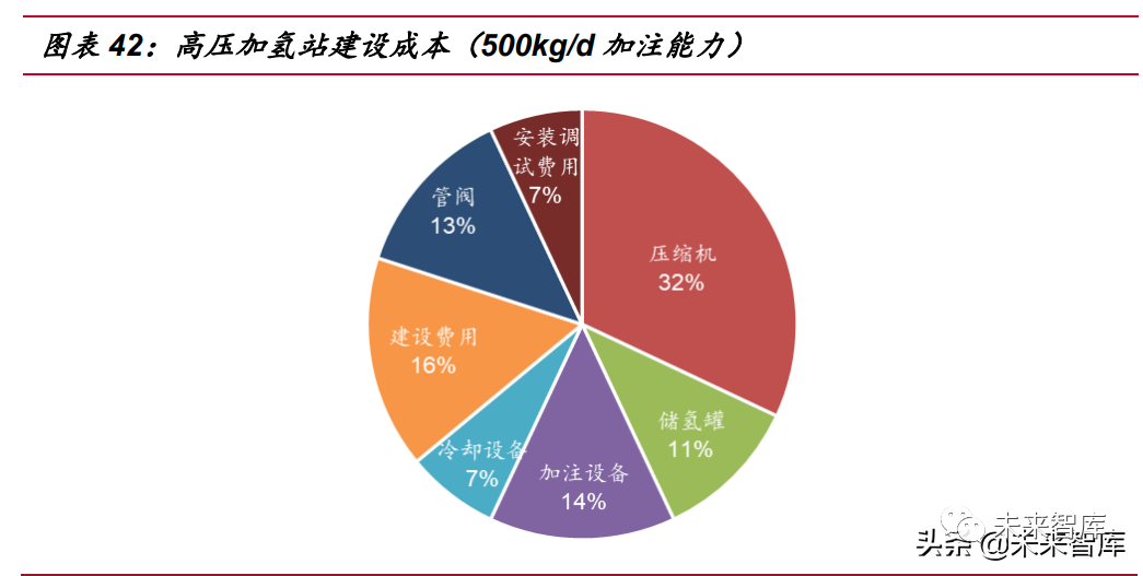 在當(dāng)前以高壓氣態(tài)實(shí)現(xiàn)氫儲(chǔ)運(yùn)的氫能發(fā)展初級(jí)階段,氫氣壓縮機(jī)是我國氫能儲(chǔ)運(yùn) 所需的關(guān)鍵設(shè)備,當(dāng)前國內(nèi)大多數(shù)氫氣壓縮機(jī)主要依靠進(jìn)口,投入及維護(hù)成本高,尤 其以加氫站所需壓縮機(jī),以 500kg/d 加注能力加氫站建設(shè)為例,壓縮機(jī)成本占據(jù)加氫 站總成本的三分之一。